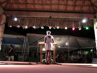 Prelude was due to start at 5.30pm and wrap about an hour ago at 8.30pm. According to the programme, it was due to feature: pan, jazz, dance and "world music" (a term which the organisers apparently find fitting for Wendy Sheppard; Wendell Constantine and H20 flow). Many people are due to perform in this prelude and I think it's still going on...Is that De Fosto? Why yes it is. He is signing a tribute to TT's gold medallist in javelin, Keshorn Walcott. Lyrics include, "You get house, you get land....de Toco golden boy!"